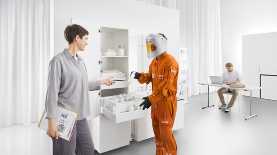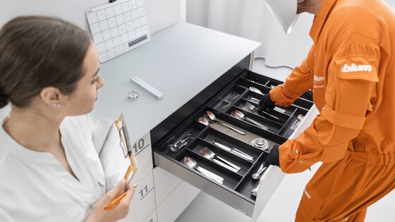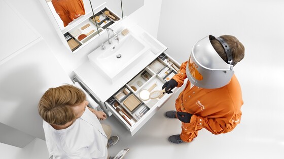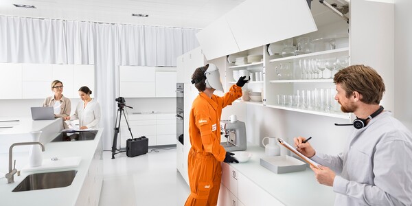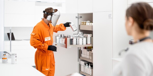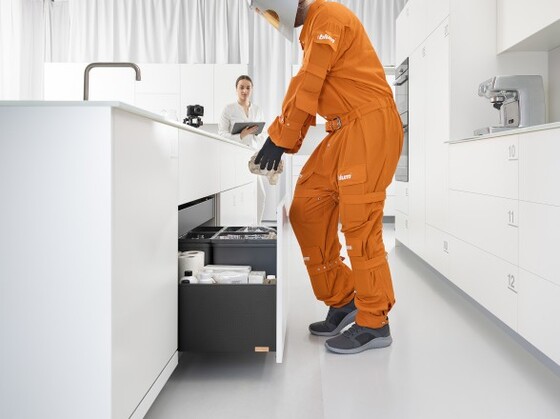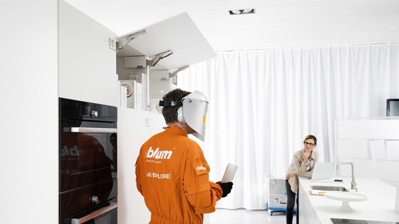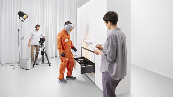 Designing functional hardware for ergonomic cabinets requires a keen eye for observation. Our Requirements Research Department uses this skill on a daily basis. We not only monitor how cabinetry is used around the world but also employ the AgeExplorer® age simulation suit as a key tool for research. The results of our detailed studies are incorporated in the development of new products and the optimization of existing ones.