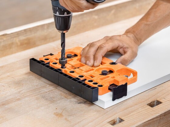 Robust tools provide all-around support for assembling drawers, fronts, and cabinets. You can use our universal boring template to precisely mark and pre-bore fixing positions.