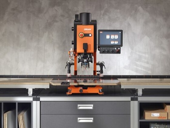 MINIPRESS helps you install Blum hardware quickly and efficiently. Yet EASYSTICK adds a completely new dimension to installation and assembly: drilling positions are calculated digitally, and stops move automatically to the right position. Drilling is precise and there is no need for subsequent adjustments.