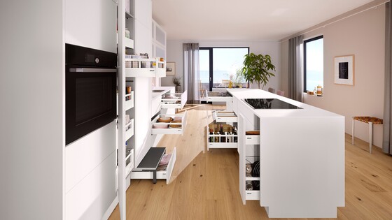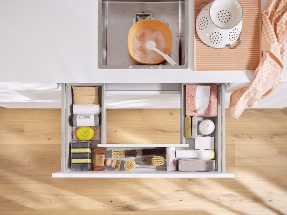 Put storage space to best use and make it tidy inside, too. With high-quality organization systems from Blum, you can organize the interior of your drawer to suit your needs. All items can be stored securely and conveniently.
