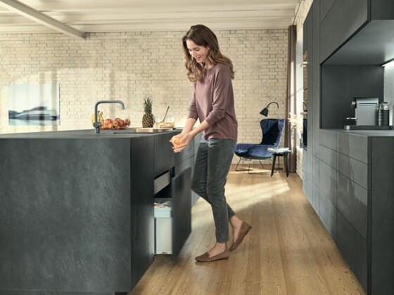 Your hands are often full, wet or dirty when you want to open the sink cabinet. This is where the SERVO-DRIVE electrical touch-to-open system comes in handy. Simply touch the drawer front with your knee, hip or toe and it opens by itself.