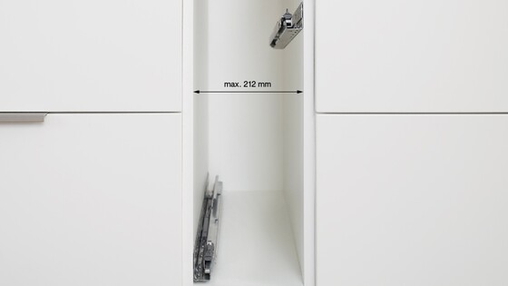 The linear and slim design of LEGRABOX can be used to its full advantage in narrow cabinet solutions.