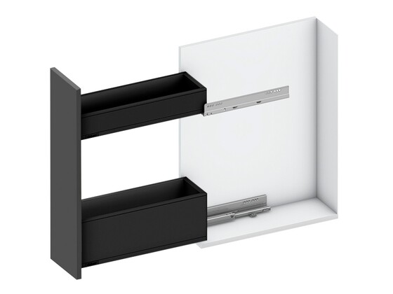 MERIVOBOX also gives you a choice of different drawer side accessories for narrow cabinets.