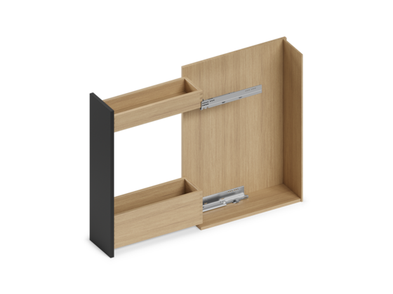 MOVENTO drawer runners let you create a SPACE TWIN solution using wood drawer boxes.