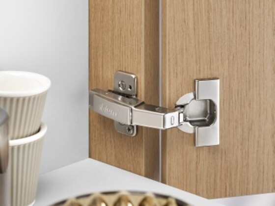 CLIP top hinges are concealed hinges for cabinet doors and guarantee trustworthy function and attractive design. Doors can be attached and removed quickly without tools - they snap on and off. Variable three-dimensional adjustment and cam adjustment are available to save time. They work in almost any hinge application because of the wide variety of mounting plates available, meaning these hinges can be used in frameless and face frame cabinets.
