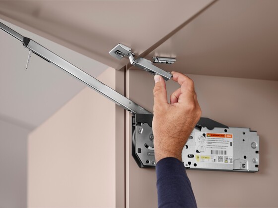 In addition to its more compact design, the latest generation AVENTOS HF top also impresses with simpler assembly and installation – thanks to the defined fixing position of the lift mechanism and front fixing bracket regardless of the cabinet height. What's more, the adaptive BLUMOTION adjustment and lift mechanism adjustment are possible from the front, even with the cover cap in place.