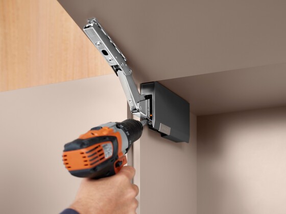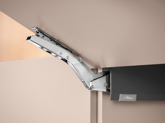With AVENTOS HK top, extra attention has been placed on simple and precise installation and quick assembly. The symmetrical lift mechanisms have an integrated positioning template, eliminating the need for measuring and pre-drilling.