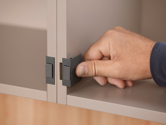 The switch used to close the front is attached to the side of the cabinet where it can be easily reached. It is simply pressed into a 35 mm hole.